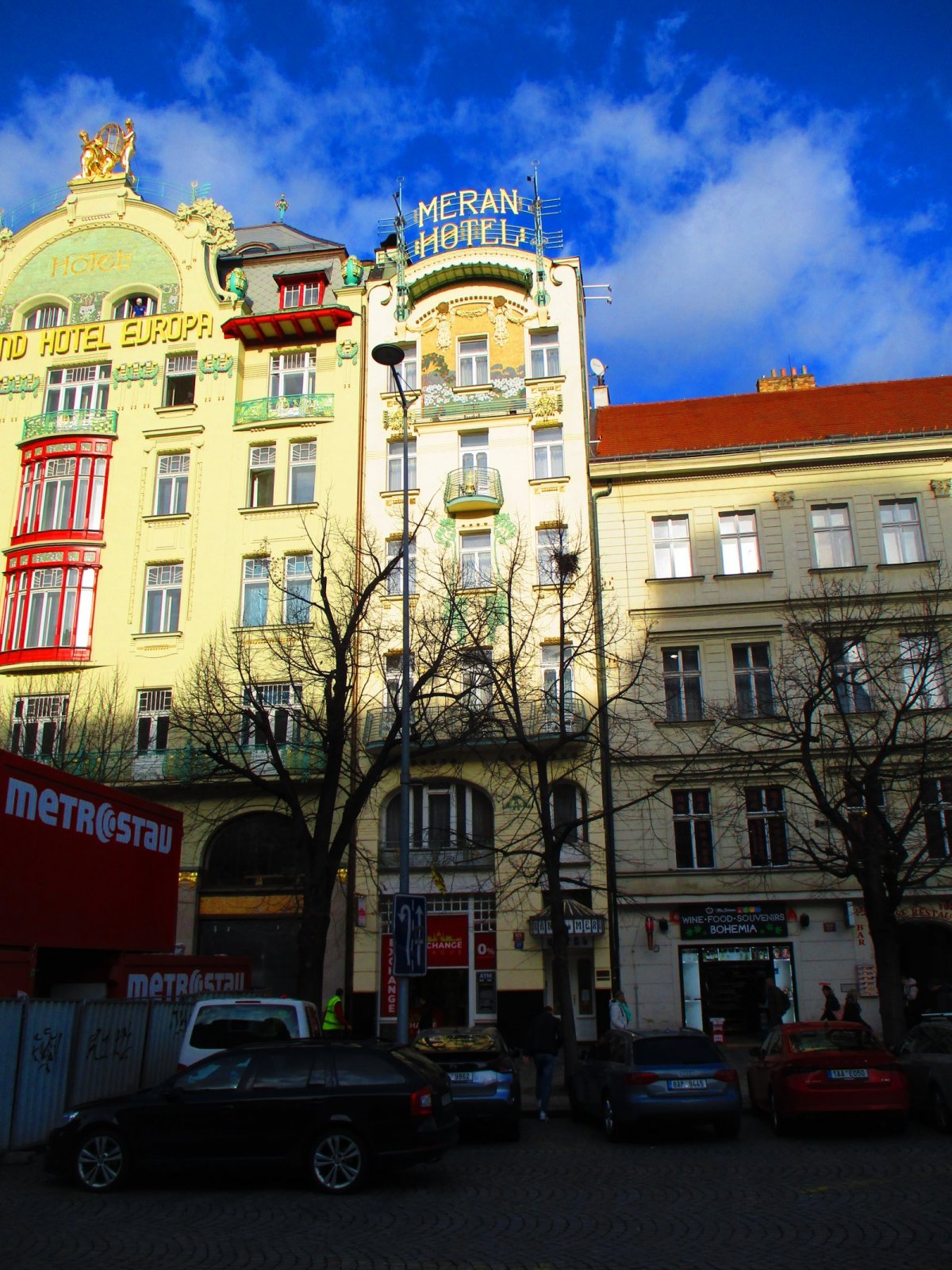 Stejně jako na první pohled zaujme Grandhotel Europa, tak ještě více nás mnohdy zarazí štíhlý a vysoký objekt v jeho sousedství - hotel Meran, který sice vypadá jako "chudý příbuzný" sousedního domu, ale to vůbec není pravda.