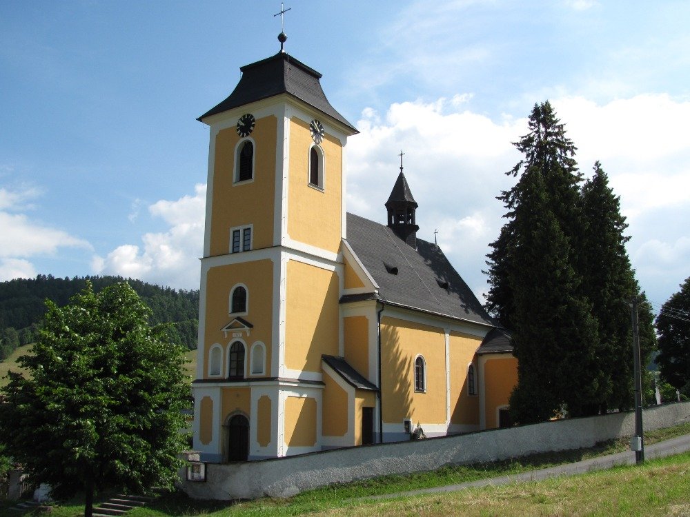 V době svého vzniku tento kostel nahradil původní kapli s dřevěnou věží. O pět let později byl založen hřbitov a po dostavbě věže získal kostel tři zvony. Ty však byly zrekvírovány během II. světové války. Součástí areálu se postupně staly také ohradní hřbitovní zeď, márnice, budova fary a kamenný kříž s korpusem Krista, který se nachází u vstupní brány.
