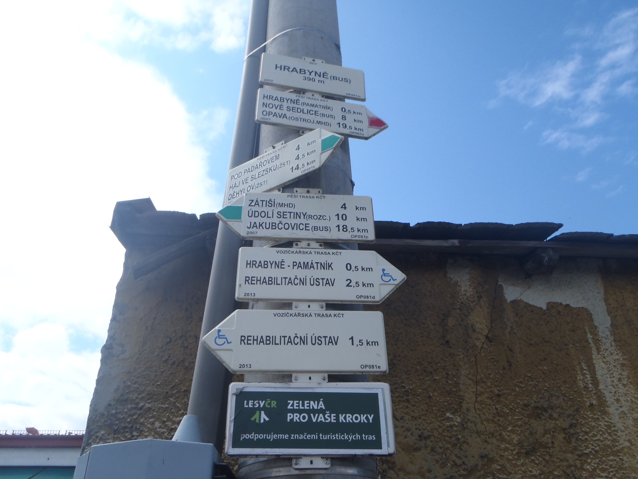 Hrabyně se nachází mezi Opavou (13 km) a Ostravou (18 km). Z obou měst je sem dobré autobusové spojení, železnice tudy nevede. My jsme do Hrabyně přišli, stejně jako před 25 lety, po zelené značce z Háje ve Slezsku, což jsou 4 kilometry pěší chůze. Bohužel většinou po silnici.