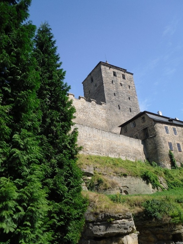 Hrad vznikl po roce 1371, jeho stavebníkem byl pravděpodobně Petr z Vartemberka. Po něm získali Kost Hazmburkové a po nich Šelmberkové, kteří hrad rozšířili o Šelmberský palác. Jan z Bibertštejna v 1. polovině 16. století dal přistavět za 1. hradní bránou renesanční křídlo s velkou kuchyní. Za Kryštofa Popela z Lobkovic vznikla roku 1576 celá jižní část hradu a hospodářské budovy s pivovarem. Plány Albrechta z Valdštejna přestavět Kost na zámek a zároveň pevnost zmařila jeho smrt roku 1634. V roce 1635 část hradu vyhořela a od té doby přestal být majiteli trvale obýván. Černínové z Chudenic změnili koncem 17. století gotický palác s obytnými budovami v sýpku. Hrad utrpěl za třicetileté války, později měl být zbořen. Po roce 1867 částečně upraven novogoticky. Hradu dominuje hranolová Bílá věž lichoběžníkového tvaru, vysoká 5 pater, jv. nárožím obrácená do údolí Plakánku. Je vsazena do nároží hradební zdi, vybudované z pískovcových kvádrů. Věž byla určena jen k obraně; mansardová střecha pochází až z 18. století. Hrad má ještě menší válcovou věž z konce 14. století při vstupní bráně. Z Předhradí se stoupá 3 branami kolem arkád Biberštejnského paláce na nádvoří vnitřního hradu; je obklopeno věžovitým palácem, hradní kaplí, nedokončenou valdštejnskou salou terrenou, Bílou věží, starým palácem s válcovou věží a Šelmberským palácem, na němž je deska s vytesaným šelmberským znakem se sviní hlavou a listovými rozvilinami. Vnitřní hrad chránila mohutná hradební zeď s cimbuřím, dokola obíhal parkán a na okraji pískovcových skal stálo ještě vnější opevnění.