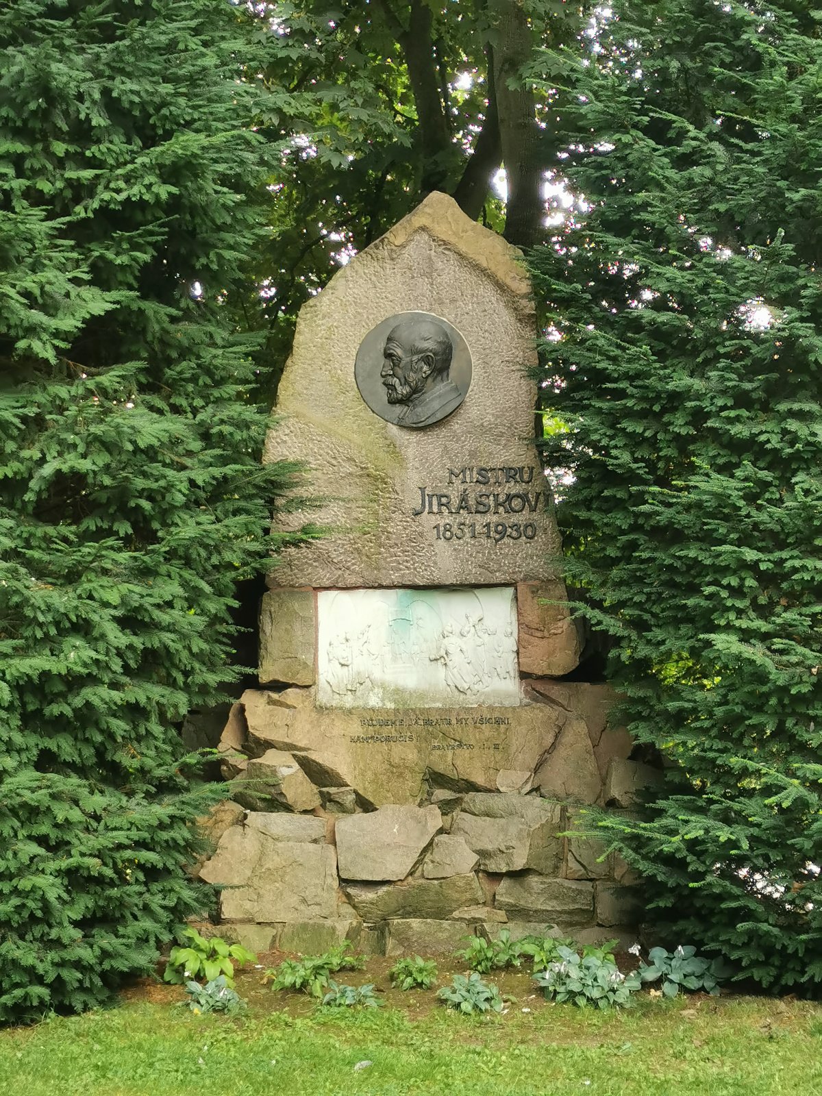 V sadoch je umiestnený Jiráskov pamätník. K slávnostnému odhaleniu došlo 4.6.1922 ešte za spisovateľovho života. Relifny profil spisovateľa bol odhalený až po jeho smrti 1931. Alojs Jirásek ( 1851 - 1930 ) bol 4x navrhnutý na Nobelovu cenu za literatúru.