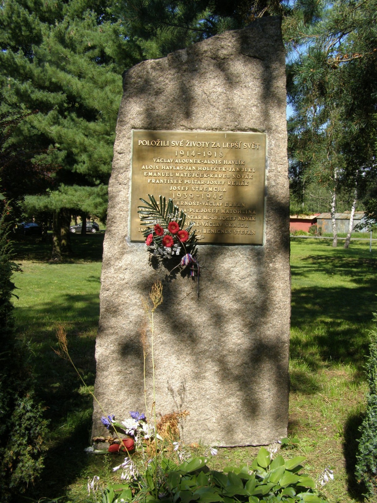 Pomník věnovaný TĚM, kteří položili svůj život za 1. a 2 sv. války se nachází nedaleko žst Hradec Králové - Slezské předměstí. Pomník je tvořen žulovým blokem s pamětní deskou.