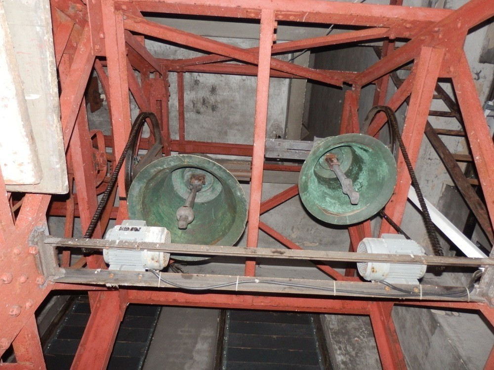 Každý z předcházejících tří odstavečků je věnovaný výhledu z jednoho okna, respektive zmíněnému průhledu mezi žaluziemi. Přidávám i fotografii dvou zvonů (ve starších průvodcích se píše o třech), které ve večerních hodinách neuvidíte, jelikož horní část věže je neosvětlená.