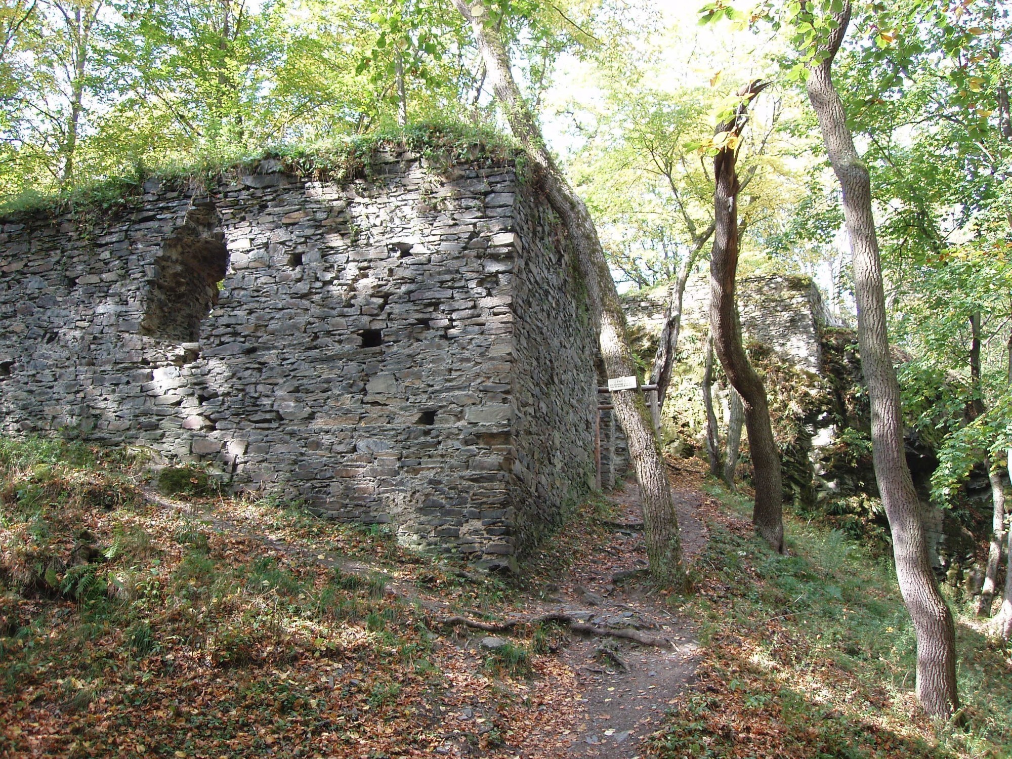 A tak ještě něco o dispozici hrádku. Byl to neveliký hrad a podle zbytků kamenných zdí měl dvě části. Obdélníkové stavení a čtyřbokou věž, postavenou výše a oddělenou od obytné budovy. Vcházelo se do ní nepochybně z prvního patra po dřevěném můstku. Věž zanikla požárem. Dosud zachovalé kamenné zdi mají stopy po rovných stropech. V přízemí obytné budovy jsou dodnes zřetelné dvě místnosti, z nichž jedna má ještě v boční stěně klenuté okno. Celá budova hradu byla přibližně 17 m dlouhá a 9 m široká. Vchod do ní byl z jihovýchodní strany mezi obytnou budovou a věží.