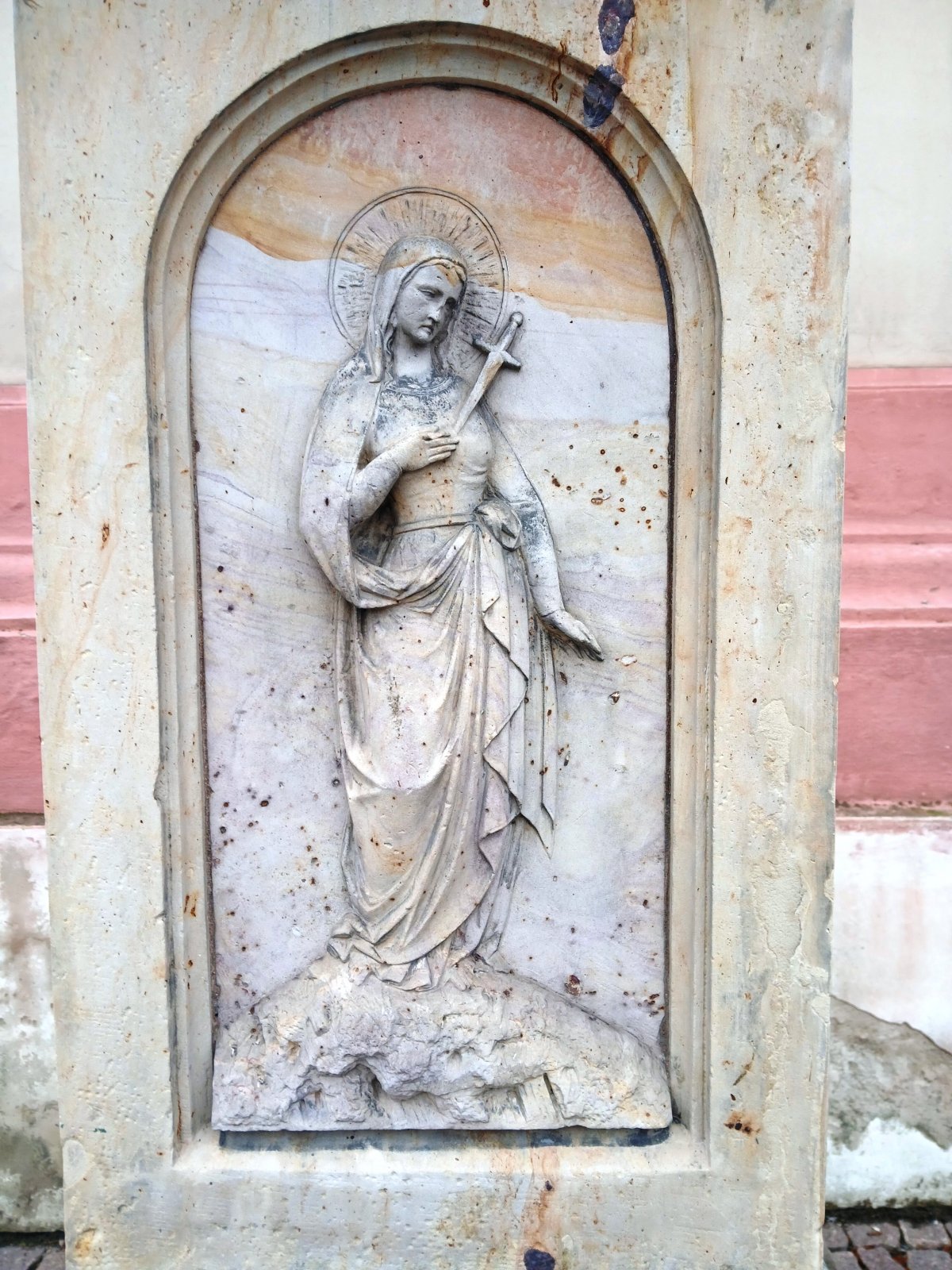Hranice - Socha sv. Anny a kríž pred kostelom Sťatia sv. Jána Krstiteľa