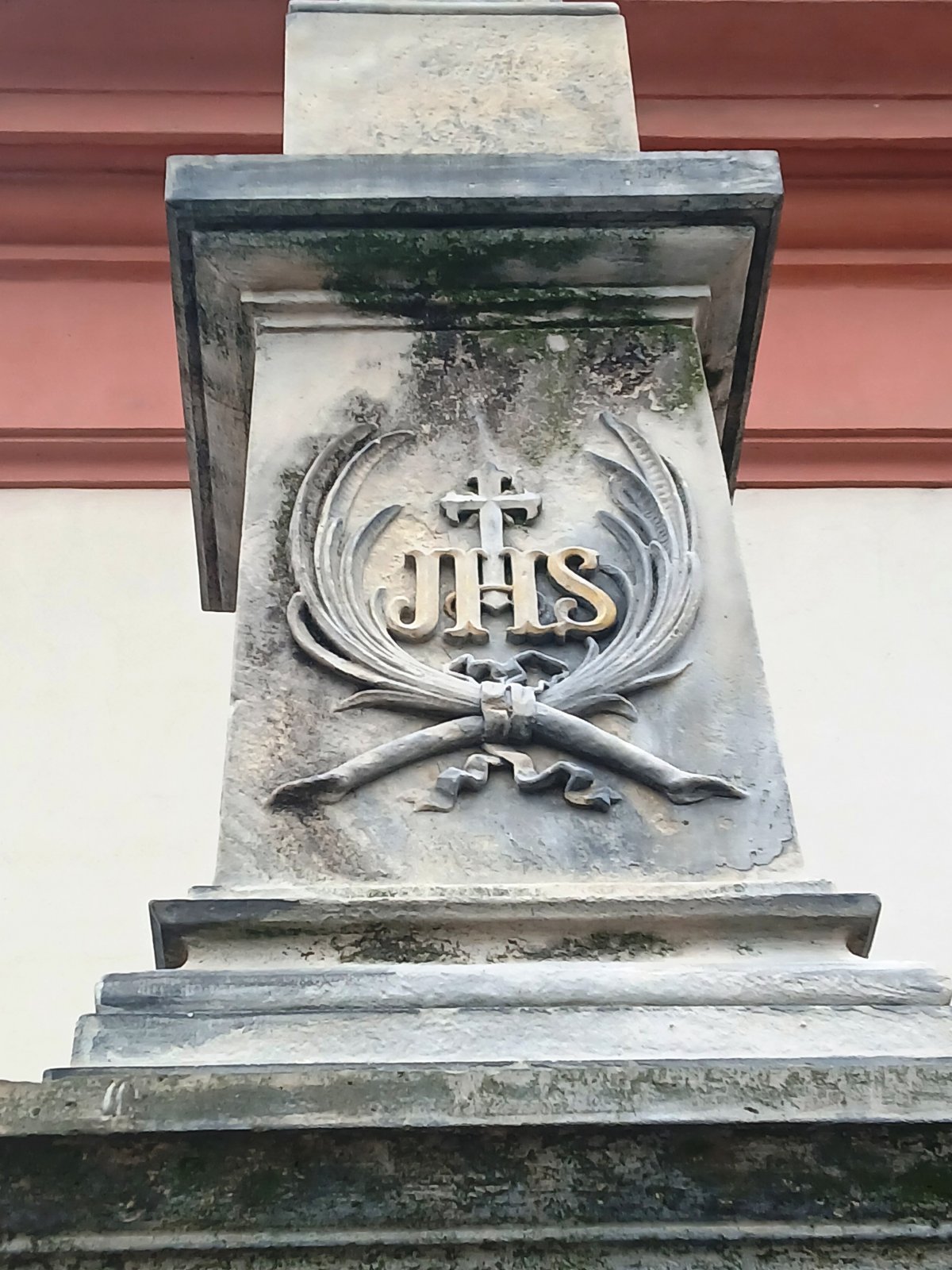 Hranice - Socha sv. Anny a kríž pred kostelom Sťatia sv. Jána Krstiteľa