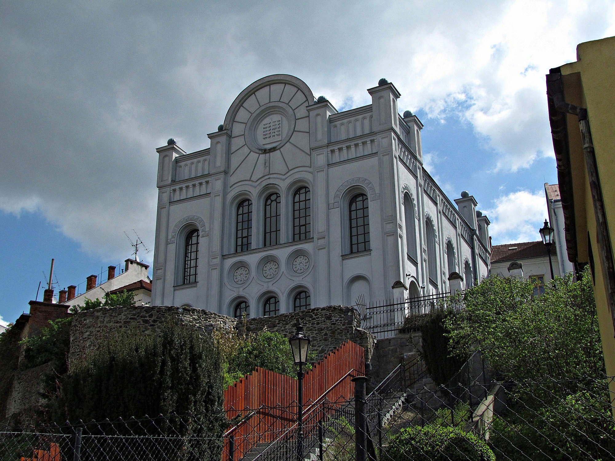 Tento pěkný novorománský objekt z roku 1864 v maursko-byzantském slohu vznikl dle projektu rakouského architekta Franze Machera. Byl vystavěn nad půlválcovou baštou, která byla součásti původních městských hradeb. Před „novostavbou“ se na okraji návrší, na němž se rozkládá historické městské jádro, vypínala stará dřevěná synagoga ze třicátých let devatenáctého století.