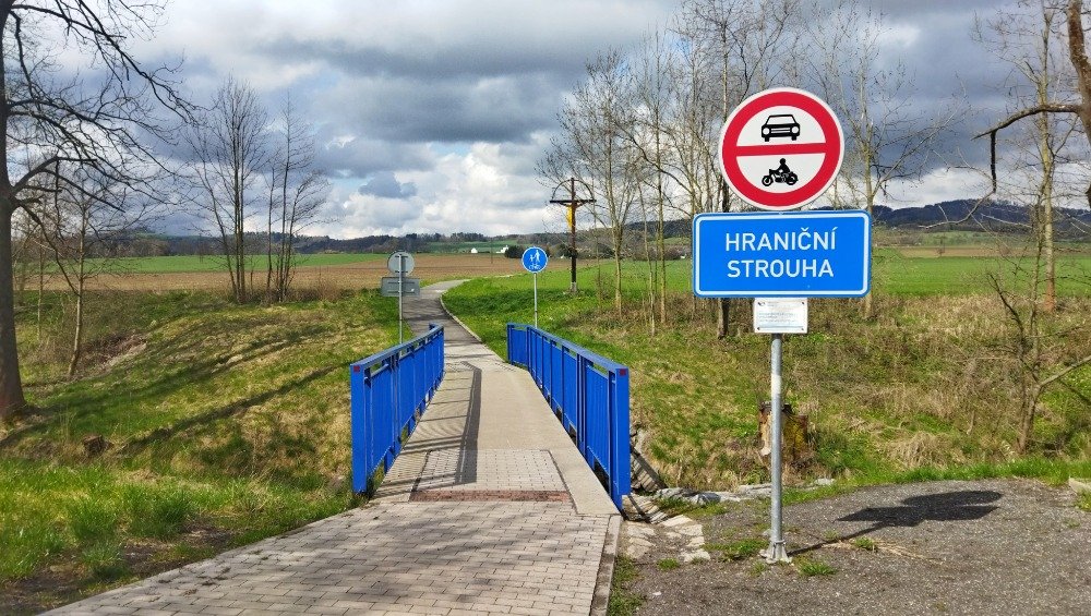Začněme tedy tím místem, kterým je lávka pro cyklisty a pěší turisty a její nejbližší okolí. Lávka přes Hraniční strouhu toriž skutečně silně připomíná hraniční přechod. Na jedné straně (postřelmovské) toto místo „zdobí“ odpočinkový dřevěný přístřešek, na té druhé (postřelmůvovské) zase dřevěný kříž s plechovým Ukřižovaným. Ten je replikou kříže, který neodolal zubu času někdy v 60. letech minulého století.