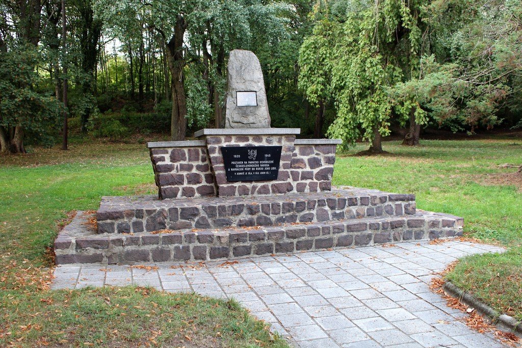 Když se jde z Tržního náměstí Rybniční ulicí ke kostelu Vzkříšení, prochází se kolem kamenného památníku. Z nápisů na památníku se dozvíme, že byl postaven k odčinění Bílé hory a také k osvobození republiky. Z toho plynou i oba uváděné letopočty 1620 a 1945. Samotný památník stojí na terase a je ukončen kamenem, na kterém je deska se špatně čitelným textem. Důvodem k jeho postavení mohlo být poválečné nadšení a z dnešního pohledu už to moc neříká. Přesto jeho existence nutí k zamyšlení.