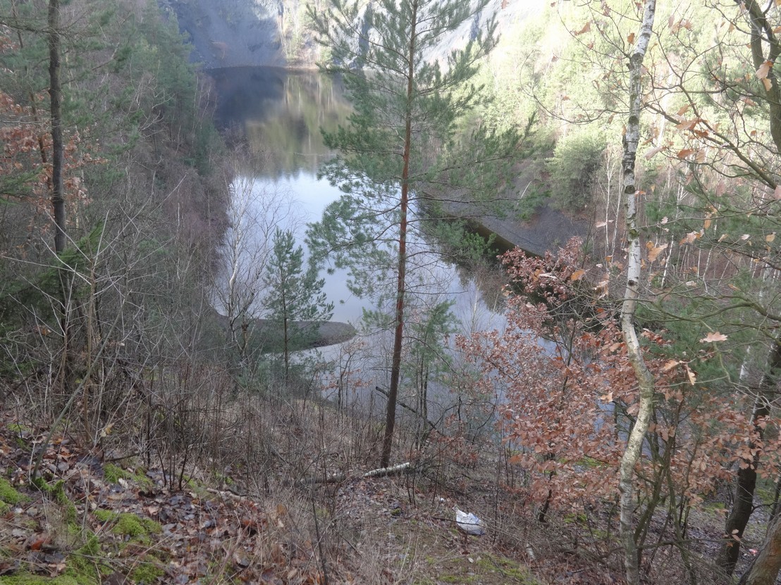 Zajímavé pohledy na jezírko dělá především úroveň okolního terénu, který je asi 60 metrů nad hladinou. A tudíž nejenom voda upoutá návštěvníka. Velkého množství břidlice v okolí jezírka si určitě také nelze nevšimnout. Haldy, po kterých vede úzká pěšinka, občas s nádechem povyrostou, aby se posléze narovnaly nebo vzápětí skrčily. Někdo by sice mohl říct, že je to obyčejná díra s vodou tam někde dole, ale já myslím, že když se člověk pomalu projde kolem, tak si to tady musí zamilovat.