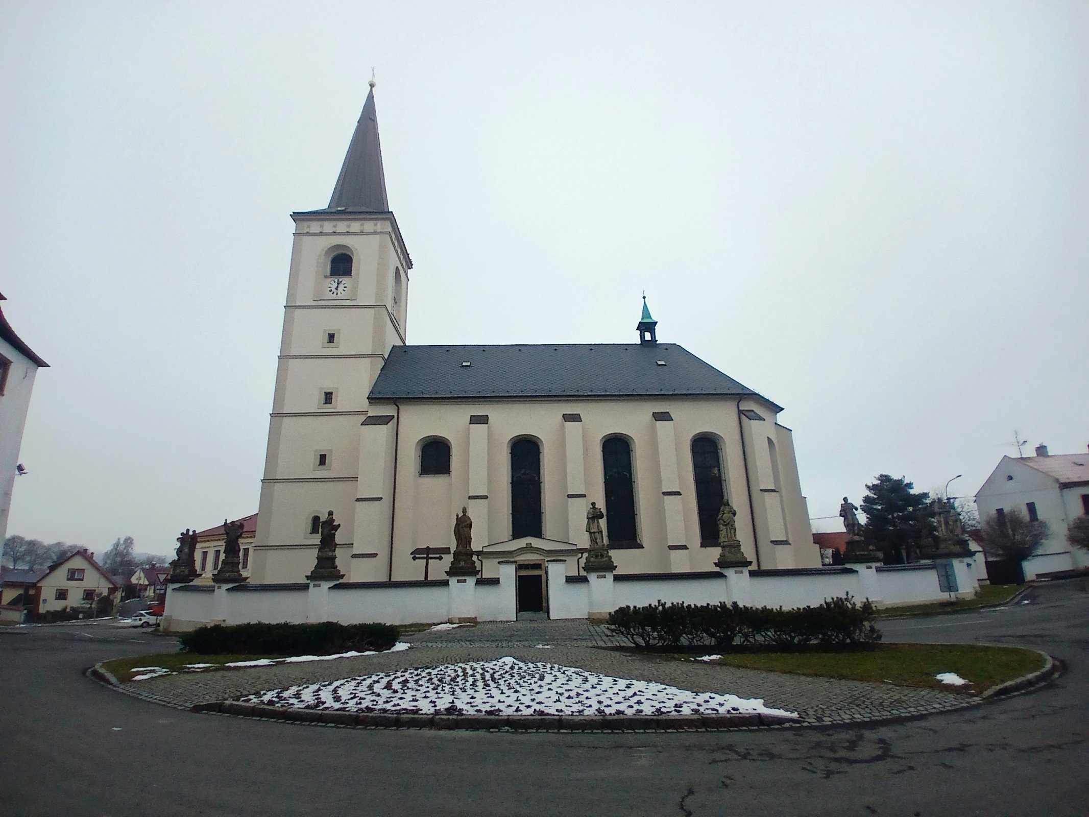 Hustopeče nad Bečvou - ohradný múr so 14. sochami okolo kostola