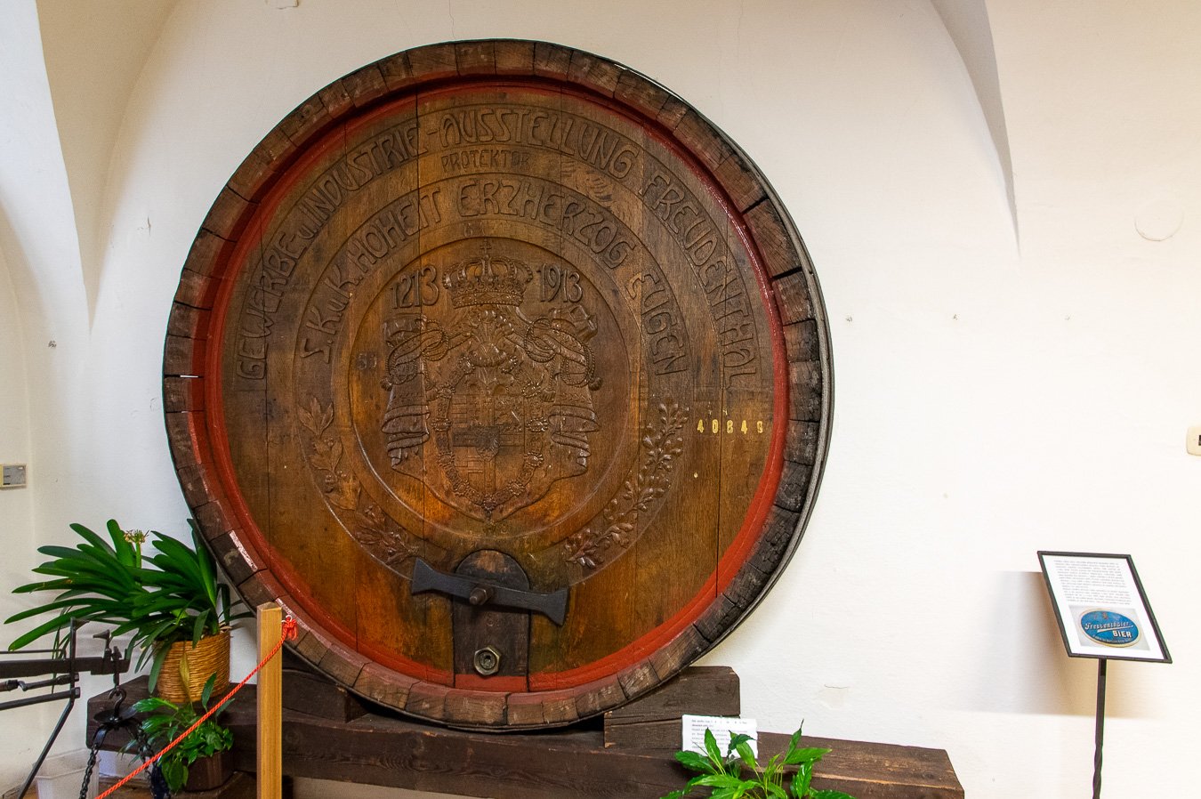 Na tradici výroby oblíbeného pitiva odkazuje dnes v prostorách infocentra na zámku čelo výstavního sudu, který byl vyroben pro Živnostenskou a průmyslovou výstavu v roce 1913. Sud byl původně vskutku celý o objemu 216 hl. Bohužel zůstala zachována jen čelní strana s erbem Řádu německých rytířů a jeho velmistra Evžena Habsburského.