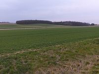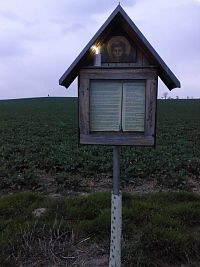 Tento naplánovaný stres mě alespoň nutí neloudat se tolik, jak už to při „kochání se“ krajinou umím velice dobře. Je chladněji, ale i tak si mikinu nechávám až bude největší zima, když se zastavím nejlépe v předpokládaném cíli ve Štítině při čekání na vlak do Ostravy. Nyní jsem v naprosté teplotní pohodě, kterou mohu svým tempem ideálně korigovat. Zkrátka se mi běží dobře s pocitem mírného chladu. Po poslechu ISS je dalším lákadlem dne krásná kaplička svatého Antonína. Než se k ni dostanu musím proběhnout zhruba kilometr po nezvykle „useknuté“ cyklostezce. Její začátky nebo konce nikam nepokračují, na nic nenavazují. Cyklostezka uprostřed polí. Naštěstí k nim vedou zpevněné polní cesty. Na severním konci cyklostezky se připojuji k cestě vedoucí do Pustých Jakartic a opačným směrem kolem malého jezírka zpět do Opavy – Kateřinek. Pokračuji jen kousek doprava a pak zase odbočím doleva do aleje, která mě již dovede až ke kapličce. Správnost směru si bleskově potvrdím dotazem u protijdoucích milovnic dnes velice moderních „severských holí“. Já jsem jejich kouzlu nepropadl, i když spousta lidí o NW básní. Pro mě to znamená zbytečnou váhu navíc a zabrané místo. Když se přede mnou objeví kopec „na čtyři“, tak mi stejně budou k ničemu. V nejhorším přece v lese vždy nějaký klacek najdu. Stejně rychle najdu, jako potom zahodím. Ale kdo ví, možná někdy jejich význam pochopím. Je pod mrakem, slunce skoro neprosvitne. Přesto se stále cítím jako vítěz, radost z úspěšného poslechu stále dodává spoustu energie „z ničeho“. Před kapličkou se v aleji zastavuji ještě u nevšedně provedeného kříže. Dvě stě metrů od něj se nalézá kaplička svatého Antoníčka. Toto je druhý důvod proč jsem si tuto cestu vymyslel. Obec Oldřišov mám už také „dlouho“ na dohled a k její hranici mi zbývá možná jen 300 metrů. Pohledem mezi stromy aleje vidím i hyzdící větrnou elektrárnu někde v dáli. Později doma z mapy zjišťuji, že vrtule jsou jen kousek od polské hranice u kopce Obecník.