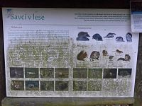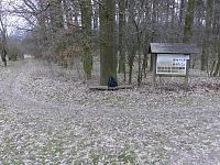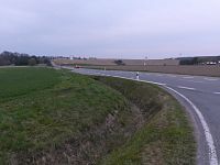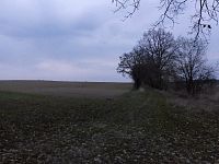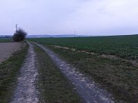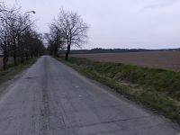 Šeří se a atmosféra se stává dobrodružnou. Jsem už tak daleko, že se určitě vracet nebudu chtít, ale cesta přede mnou ještě může být zajímavá. Po silnici podél Oldřišovského potoka (Bílé vody) se dostávám k významné motoristické spojnici mezi Služovicemi, Arnoštovem a Pustými Jakarticemi s číslem 46. Tu naštěstí jen přecházím. Tuto křižovatku si pamatuji ještě z pár hodin vzdáleného vymýšlení trasy v počítači. Zatím jdu dobře. Míjím zemědělský objekt s automatem na výdej vajec. Něco, o čem jsem netušil, že může vůbec existovat. Netrvá to dlouho a z asfaltové cesty se dostávám na polní a po chvíli spíš lesní, ale vcelku širokou cestu. Je mírně z kopce a tak se mi běží dobře. Na konci tohoto klesání, kde se alej napojuje na les se zastavuji u již dosti vybledlých informačních tabulí. Klesání se mění ve strmější, ale krátké stoupání. Později se pohybuji v průměrné výšce 300 m.n.m. a jedná se o příjemnou rovinu. Menším problémem je přicházející tma (ještě se jedná o zimní čas) a tak je třeba si více dávat pozor na cestu před sebou a nenechat se omámit krásou rychlosti. O to více na cestě, kde už díry nejsou moc dobře vidět. I tak se snažím neloudat, určitě nechci na vlak čekat příliš dlouho a prochladnout. Problémem je i to, zda bude cesta z Kravař na nádraží ve Štítině osvětlená. Nikdy jsem zde nejel po tmě a navíc to bylo mnoho let zpět.