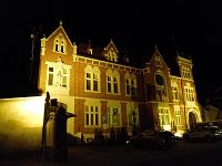 Zatím nejsem ani v Kravařích a tak jsou tato otázky předčasné. Třeba pojede i nějaký vhodnější autobus přímo z Kravař, pokud tam dojdu a neztratím se na cestě. Před mnoha roky jsem cestičkou šel, ale někde jsem se odpojil na pole, abych se vydal směrem do Chuchelné. Nyní běžím opačným směrem a míjím Oldřišovský kopec s vodárnou a na opačné straně i písečný odkryv severně od Kravař. Zajímavé místo, které jsem také před mnoha lety navštívil, ale za světla. Pokud v celé severní oblasti nejenom v okolí Kravař lze nalézt pazourky, tak i v přírodní památce „Odkryv v Kravařích“ jsem nějaké viděl. Kde přesně vedla odbočka, jsem si v ten okamžik večer neuvědomil, ale stejně se více jednalo o prolézání roštím a vysokým porostem, než příjemnou procházkou. Když vidím ceduli Kravaře, tak je to pro mě velký úspěch. Podařilo se mi nečekaně neztratit. Teď už jen doběhnout k místům, která znám a pak se napojit k mostu přes řeku Opavu a dále do Štítiny. Dostávám se na autobusovou zastávku Novodvorskou, kde se čekající ptám na správný směr přes řeku a do Štítiny. Dovídám se i příjemnou další informaci a to, že podél hlavní silnice pro auta vede i cyklostezka. Ta mi teď, už za úplné tmy přijde víc než vhod. Dobíhám k úřadu, který je úchvatně nasvětlen. Za chvíli začnou i zvony kostela svatého Bartoloměje zvonit a pro mě to značí, že je sedm hodin večer. Vlak do Ostravy by měl jet něco před celou a tak se nechci loudat. Mohu být na místě za půl hodiny, ale třeba i za celou. Když jsem z Ostravy přes Dobroslavice, Háj ve Slezsku, Lhotu, Mokré Lazce a Štítinu kolem rybníku jezdil přes Kravaře do Opavy, tak úsek ze Štítiny do Kravař i na kole „chvíli“ trval. Odhad času pro chůzi nebo běh jsem žádný neměl. Ani kilometry jsem nějak moc nevěděl, počítal jsem kolem tří. Moc rychle se mi už neběželo, u rybníku ještě míjím kapličku svaté Máří Magdalény. Od ní už je to jen kousek na nádraží, kde jsem se solidní časovou rezervou. Vidím projíždějící Regiojet do Opavy a pak ještě nějaké další vlaky špatným směrem nebo rychlík zde nezastavující. Po čtvrthodině, kdy jsem běh vyměnil za pomalé popocházení na nádraží začíná doléhat zima. Zatím, ale nebude tak velká, protože jsem lenivý si další vrstvu vytáhnout z batohu.