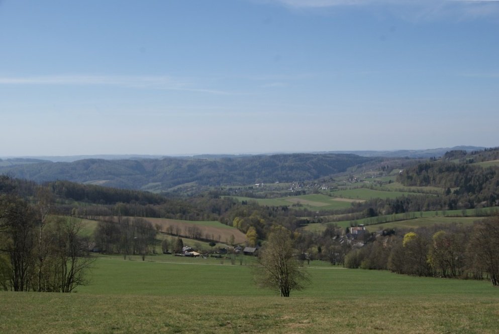 Nejvíce informací posbíráme hned na úvod. Nejprve o samotné obci a soše sv. Jana Nepomuckého, později o lípách v lokalitě zvané Na Domečku (na dlouho poslední bod pod 600 nadmořskými metry) a dalších významných stromech Janoušova a nakonec o regionu Ruda u rozcestníku Na Wilsonu (740 m). Tady víceméně končí louky i pole a začíná putování lesním porostem, i tady, bohužel, často dosti silně postiženým.