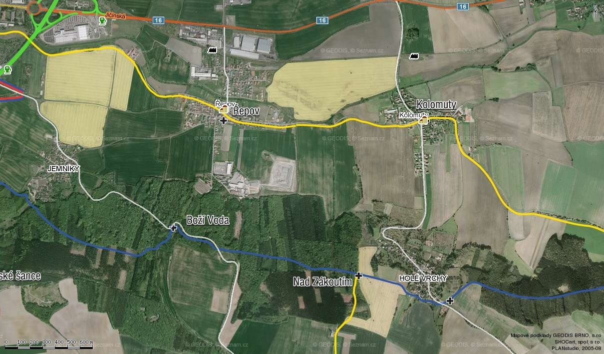 Jarním Chlumem na Boží vodu na mapě