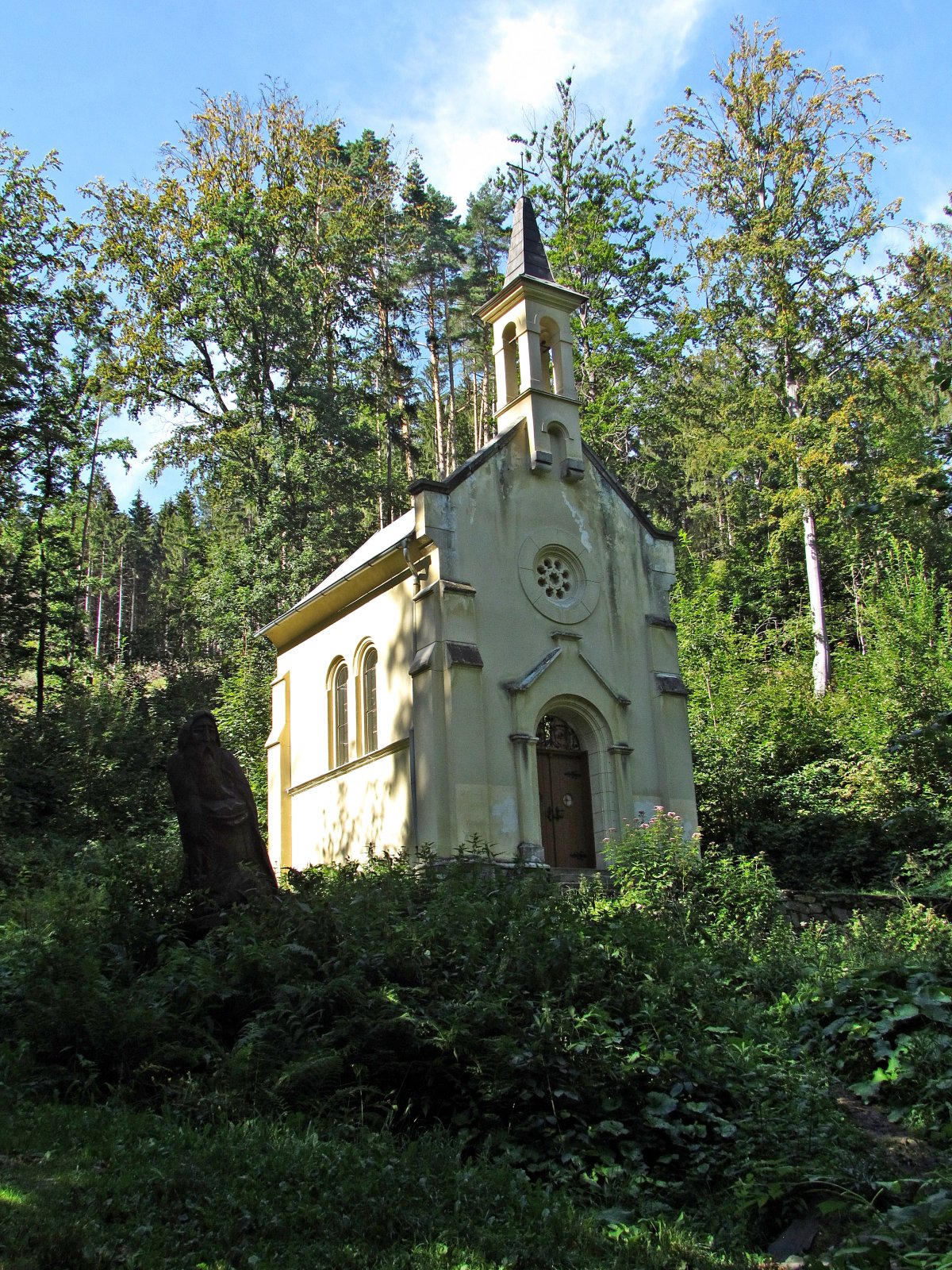 O něco málo později zde byla postavena dřevěná kaple, která byla roku 1806 nahrazena stavbou kamennou, navíc s věžičkou se zvonem. Pan stavitel ale zřejmě neodvedl moc dobrou práci, neboť kaple se za necelých 90 let ocitla v naprosto dezolátním stavu.