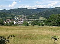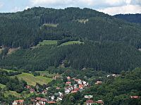 Asi každý z nás už někdy „zakufroval“ a sešel ze značené tur.trasy. Mně se to stalo při putování z Lužné přes kopec Filku a sedlo Stříbrník do obce Hovězí, kdy jsem namísto po žluté pokračoval lesní cestou mířící dál po hřebeni severním směrem. Protože jsem se co chvíli přes paseky kochal skvělými výhledy na protější hradbu Vsetínských vrchů, svůj omyl jsem si uvědomil, až když jsem z lesa vyšel na okraj velké louky, vypínající se vysoko nad cílovou obcí. Rozhodně ale nebylo čeho litovat, protože z polní cesty klesající do Hovězí se otvíraly naprosto úžasné výhledy. Nejen na vlastní centrum obce a místní část Hovízky stulenou v dolince, ale hlavně na množství protějších členitých hřebenů, klesajících k obci z hlavního hřebene Vsetínských vrchů. Směrem napravo byl vidět dlouhý úsek údolí Vsetínské Bečvy až někde k Novému Hrozenkovu, lemovaný z jedné strany svahy Javorníků a z druhé „Vsackými Beskydami.“ Z nich bylo v dálce dokonce vidět i témě jejich nejvyšší vyvýšeniny – Vysoké s 1024 m nadmořské výšky.