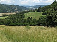 Usednul jsem do trávy a dlouho se kochal těmi nádhernými panorámaty. A zároveň přemyšlel, proč zrovna tohle Velkokarlovicko tolik lomcuje mojí dušičkou - vždyť i nám do Zlína a jeho okolí Máti Příroda ráčila nadělit sdostatek kopců. Máme tam vrchy Mladcovské, Vizovické, Hostýnské a z lodžie bytu se dívám na Chřiby s hradem Buchlovem. Rovněž jsou to kopečky dosti malebné, ale od těch velkokarlovických se něčím liší...