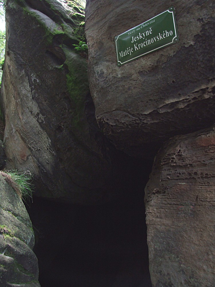 Jeskyni, ve které se údajně v roce 1634 ukrýval protestantský kněz a kazatel Matěj Krocínovský (1583 - 1648) z Borku, který byl za svou víru pronásledován, zatčen a popraven, najdeme hned pod Vyhlídkou Kde domov můj ve Chlévišti v Besedických skalách. Kolem jeskyně prochází 5 km dlouhý, žlutě značený Okruh Dr. E. Beneše, který vychází z Besedic a propojuje významná místa besedického skalního regionu. Okruh byl slavnostně otevřen už 25. září 1935 (tehdy ještě červeně značený) pod názvem Turistická stezka Dr. Edvarda Beneše.