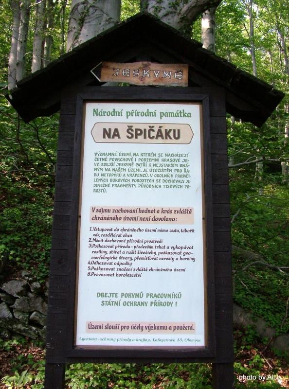 Jeskyně Na Špičáku je nejstarší písemně doložená jeskyně ve střední Evropě. První zmínka pochází z roku 1430. Navštívili jsme ji během dovolené v Jeseníkách. Jeskyně sloužila často jako úkryt - nápisy na stěnách ( např. letopočet 1519, 1564, 1613 a další ) jsou toho důkazem. Po sobě je tu zanechali lidé, kteří se sem uchylovali z nejrůznějších důvodů. Není ani vyloučeno, že jeskyně sloužila ke kultovním účelům, na což by poukazovaly kresby na stěnách. Stěny chodeb jsou zčernalé od sazí z ohňů a loučí, krápníková výzdoba vzala za své (krápníky lidé časem pozuráželi a vynesli ven - zbyly z nich jen pahýly) a zůstala uchována jen v nepřístupných místech jeskyně.