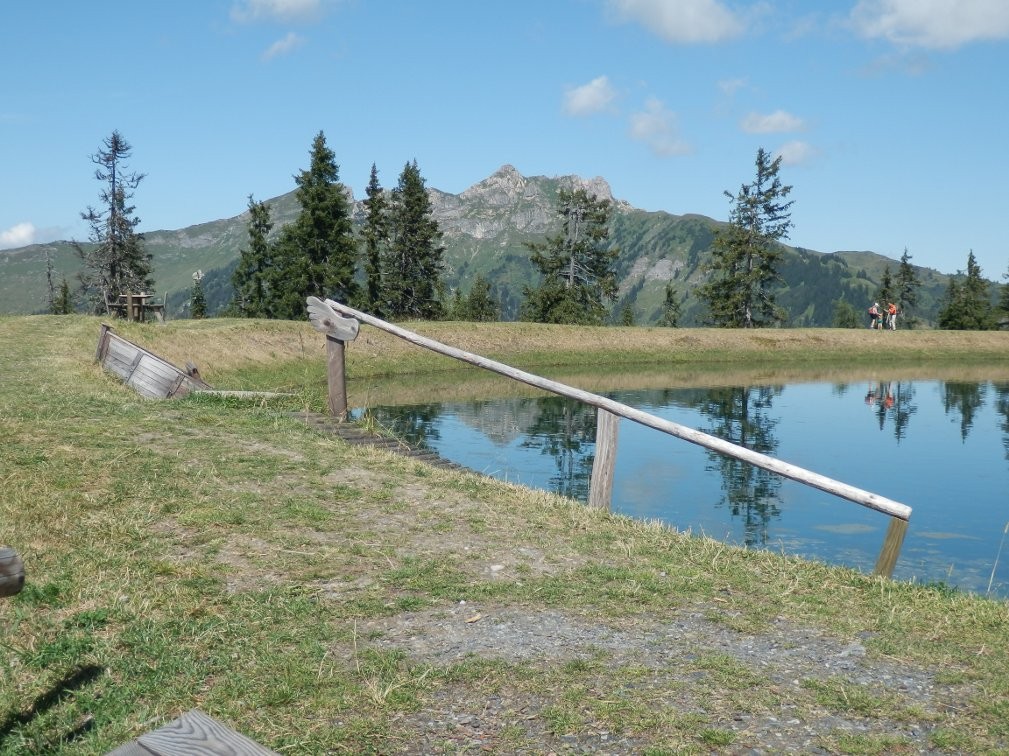 Jezero Gipfelsee a bosá stezka pod vrcholem Fulseck