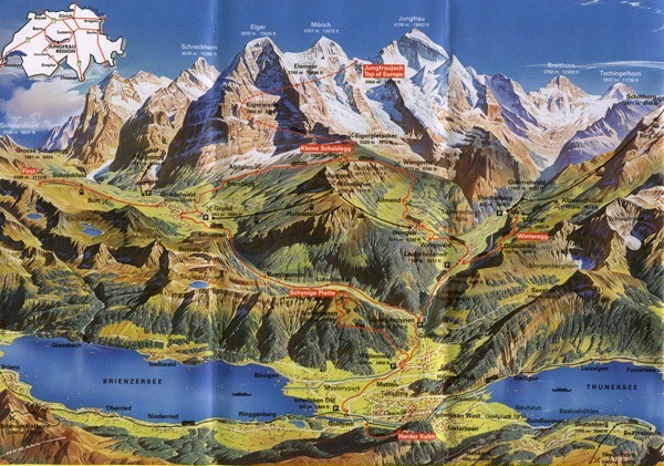 Vrcholem naší návštěvy po okolí Interlakenu byl vrchol Jungfraujoch (Top of Europe - 3 454 m. n. m.). Vzhledem k nepřízni počasí jsme tento vrchol zdolali vlakem z města Lauterbrunnen. Během dvou hodin tak zdoláte převýšení 2 500 m. Na vrcholu nás přivítala teplota okolo -5°C a vítr o rychlosti 75 km/h. Výhled tedy žádný, ale přesto je tu co obdivovat. Průchod ledovcem s výstavou ledových soch stojí za shlédnutí.
