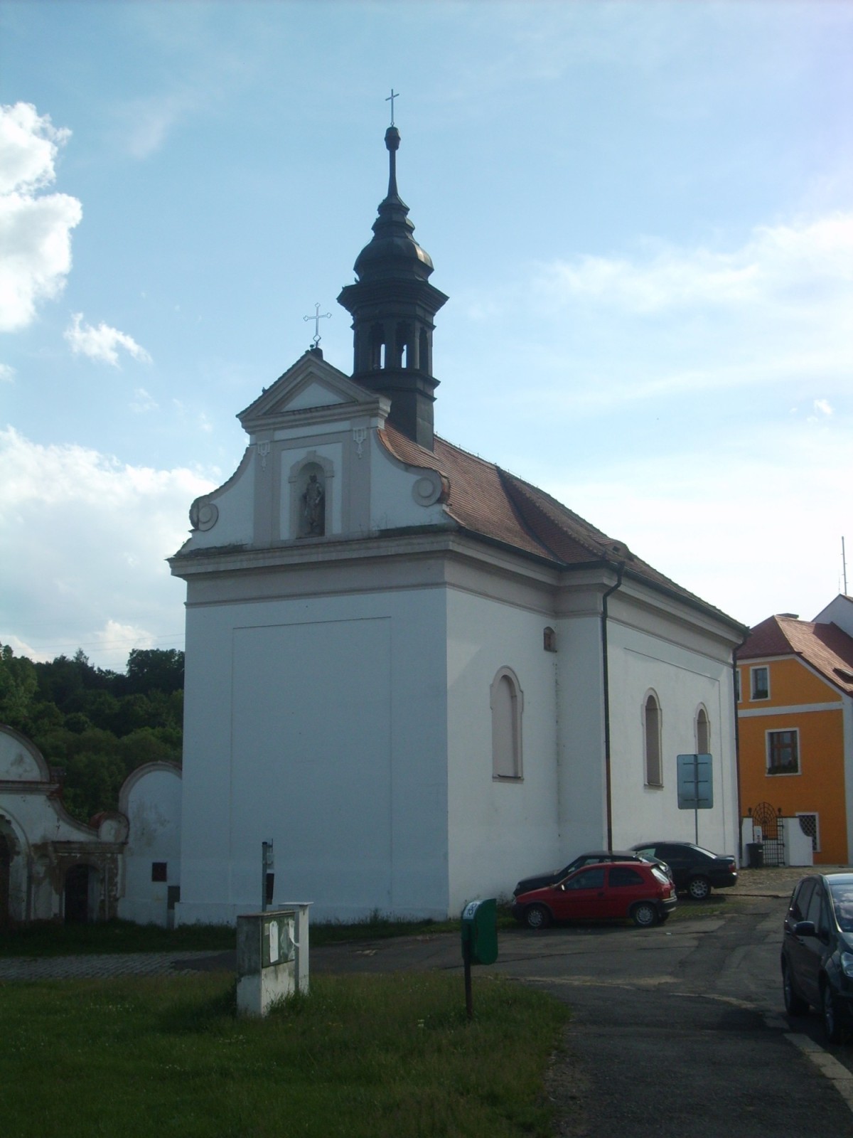 Původně raně gotický johanitský špitální kostel. Přestavby 1452, 1710-18, 1772-24 a 1812-13, vždy po požárech. Původní zdivo dochováno v presbytáři, interiér i exteriér dnes barokní. Bez pravidelných bohoslužeb.