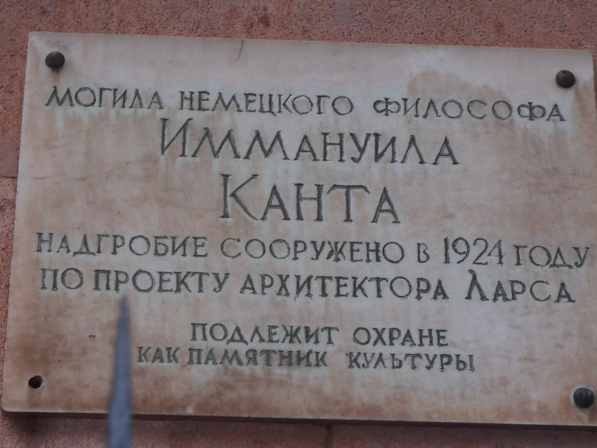 Německý filozof Immanuel Kant žil v letech 1724-1804. Narodil se v Königsbergu a ve svém rodném městě i zemřel. Je pochovaný u zdi katedrály sv. Vojtěcha na ostrově Kneiphof (rusky Knajpchof).
