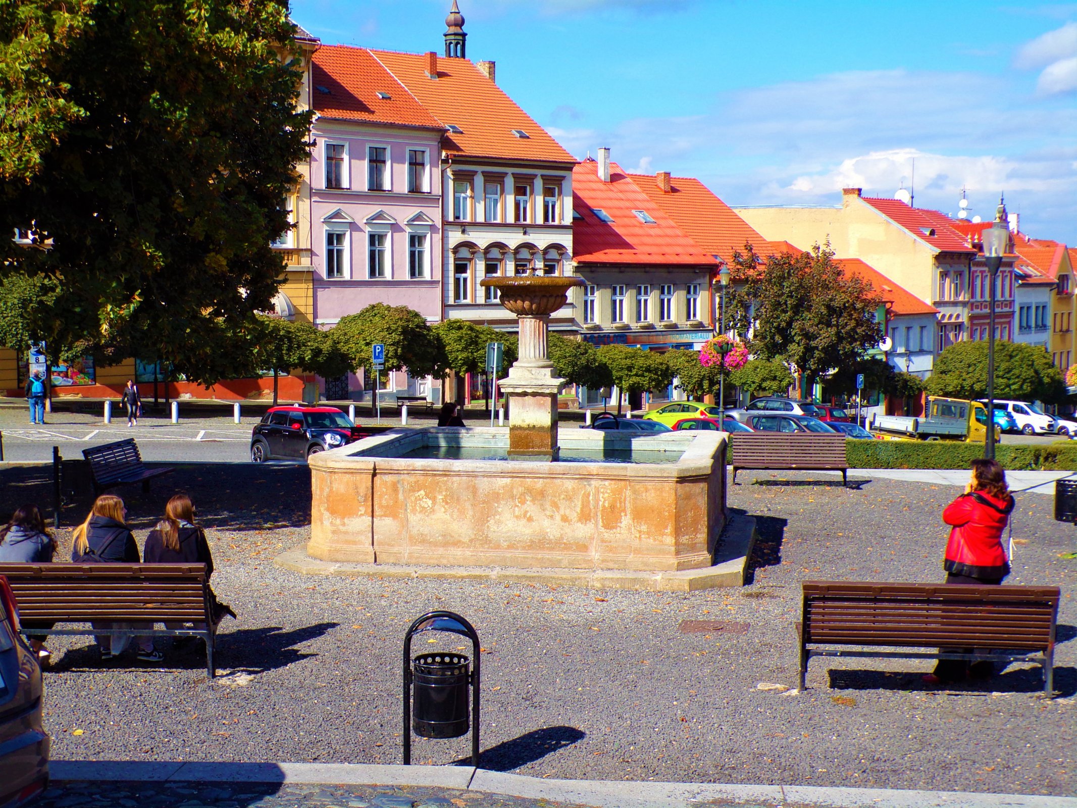 Dle prvního katastru z roku 1840 je známo, že na velkém náměstí pod ústím Očkovy ulice stál domek obecního strážníka, uprostřed náměstí socha sv. Vavřince a poblíž soch dvě studny. Stará níže položená skutečná studna, byla zděná, 60 m hluboká. Zbudována za arcibiskupa Jana očka z Vlašimi ve XIV. století. Když přestala mít „dobrou vodu“, byla v druhé polovině XIX. století zrušena pevným zakrytím. Nová studna, spíše vodovod, měla dřevěné roubení, nahrazené zděnou kašnou. Ta byla zásobena vodou z Krabčic, vedenou již za Viléma z Rožmberka z rybníka upraveného pro tento účel. V jihozápadním cípu velkého náměstí byla „tůň“ na dešťovou vodu vroubená pískovcovými kvádry a již vzrostlými topoly. Měla význam při hašení požárů. Poblíž ní, směrem ke Koňskému trhu (Husovu náměstí), stála další kašna na říční vodu, hnanou sem z Labe přes vodojem v Hlásce.“