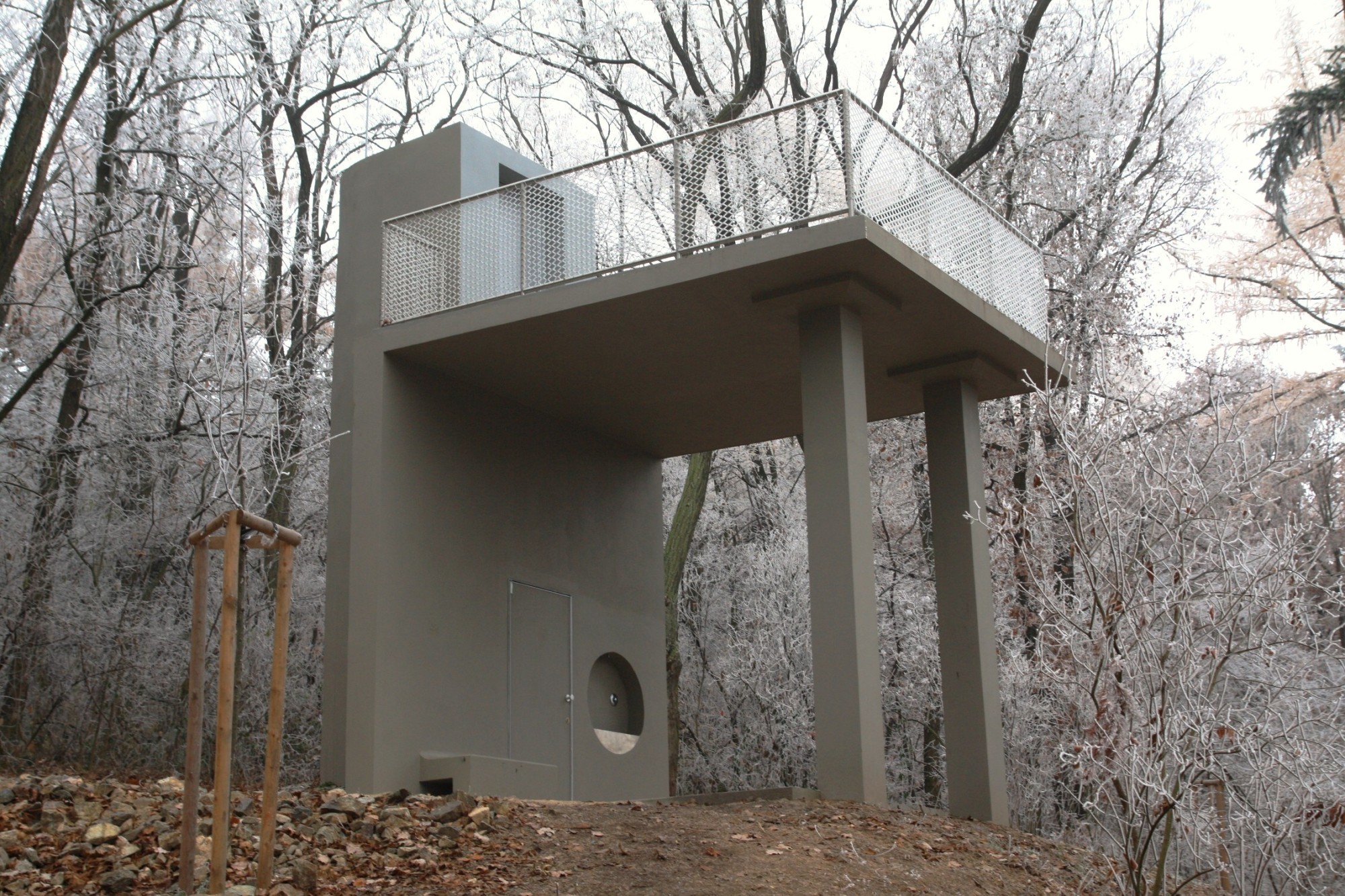 Funkcionalistická železobetonová rozhledna (vysoká 6 m, 321 m. n. m.) byla postavena r. 1928 podle návrhu arch. Čeňka Rullera v lesoparku tehdejšího ozdravovacího areálu. Po r. 1948 byly objekty v lesoparku ponechány chátrání. V roce 2011 byla rozhledna nově opravena a zpřístupněna veřejnosti.