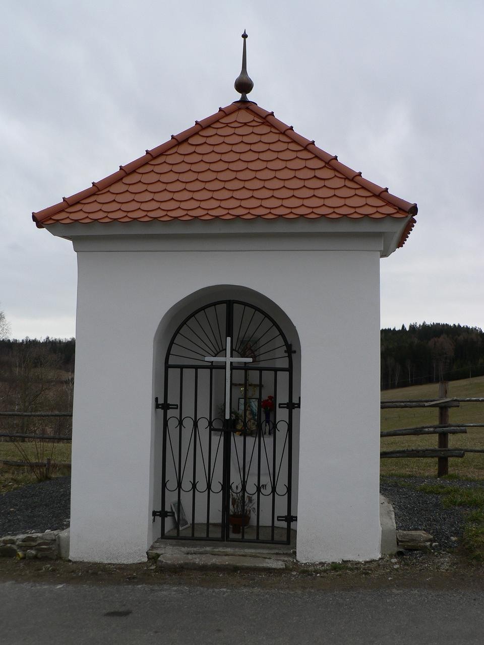 Silnice z Dlouhé vsi do Bohdašic začíná stoupat ještě před koncem obce. A když je Dlouhá Ves za zády, tak pohled na více jak kilometrové stoupání není nikterak povzbudivý. Na druhou stranu je nutné dodat, že s přibývající výškou se mění výhledy na vzdalující se obec i na věnec okolních hor. Ústředním motivem je rozložitý Svatobor a skupina vrcholů Stráží. Po dosažení sedla se zastavujeme u kapličky. Snad již od doby jejího vzniku, a to je již více jak sto let, byla pro putující touto cestou místem k odpočinku. Kaple má čtvercový půdorys, je plochostropá a zakrytá stanovou stříškou. Byla před časem opravena a doslova svítí do kraje. Nejhezčí výhled je k severu, do ostatních stran jsou výhledy jen dílčí. Západně je samota Stupná a nad ní 664 m.n.m. vrch, který v mapě nemá jméno. Na východ je Bohdašický vrch ( 672 m.n.m.) a k jihu ves Bohdašice. Vše je na mapě KČT č. 65 Šumava – Povydří.