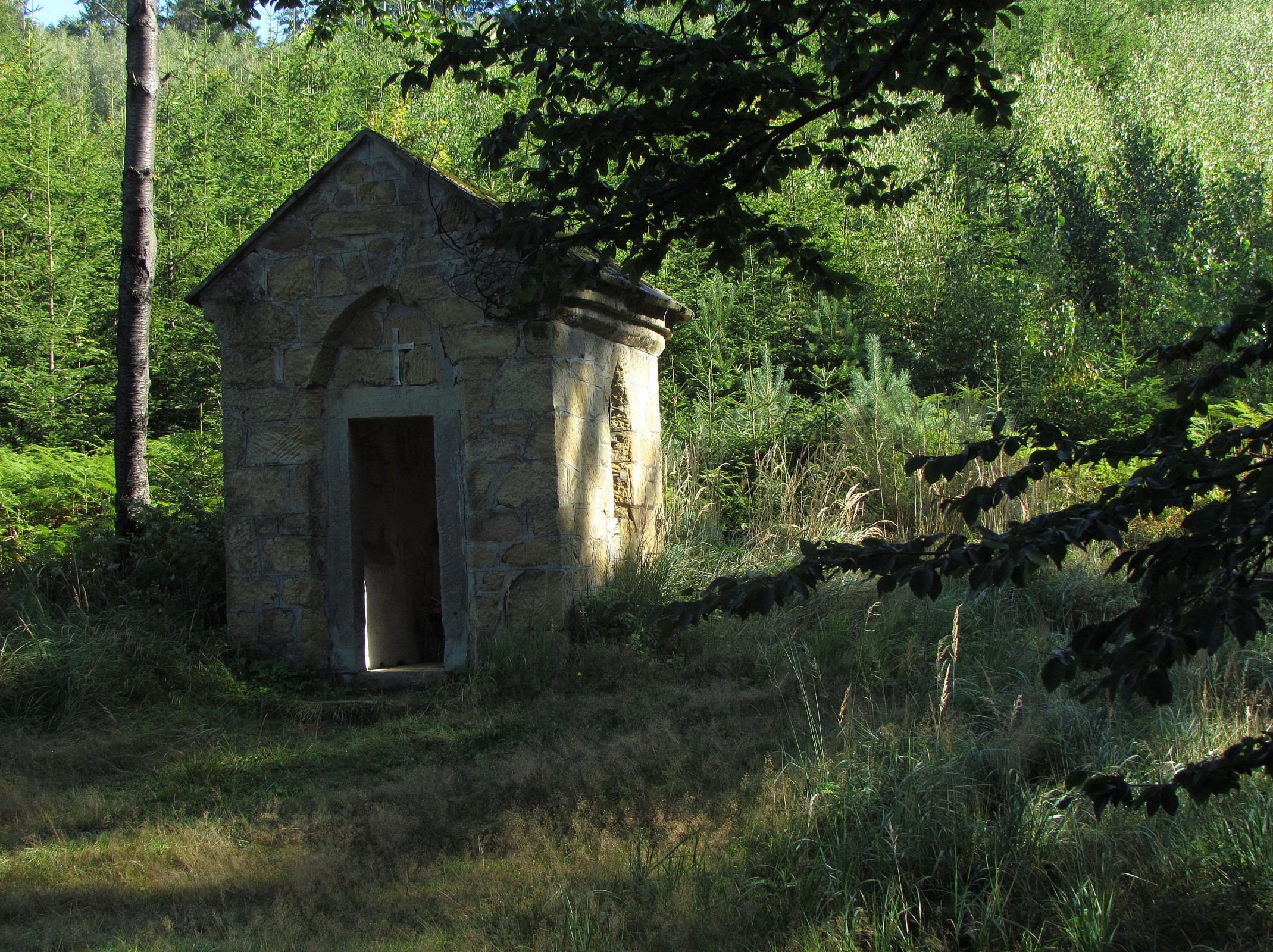Už je to nějaký ten pátek, kdy jsem zde stanul poprvé a tehdy mi kaplička v pochmurném zataženém dni připadala jak zjevení keltské svatyně. Tehdy ji totiž skoro ze všech stran obepínal vzrostlý jehličnatý les a vodní páry, stoupající po dešti od země, jí dodávaly na tajemnosti... a také na pocitu, že člověk někde překročil bludný kořen a přesunul se v „časodíře“ o tisíc let zpět. Interiér kaple byl vyzdoben velikým portrétem Františka, jehož malíř zobrazil s dlouhými rozcuchanými vlasy, an se mu kol hřívy vznáší hejno ptáků. Tato velmi zdařilá podobizna nám Františka zobrazovala mnohem lidštěji, i když spíš jako loupežníka než svatého muže. Věčná škoda, že ho nahradil obrázek mnicha s vyholeným temenem hlavy, o kterém si stejně myslím, že není historicky správný... A pevně věřím, že tady ten starý obraz visel ještě v časech, kdy se ke kapli před cestou do Nového Světa chodívaly pomodlit rodiny budoucích vystěhovalců. S částečným vykácením okolního hvozdu a výměnou obrazu sice místo ztratilo část svého Genia Loci, nicméně stále je to – (alespoň pro mne) – velmi atraktivní cíl. A i když se zde, jako ti emigranti, nechodím modlit, ale jen kochat, činím tak často a velice rád...