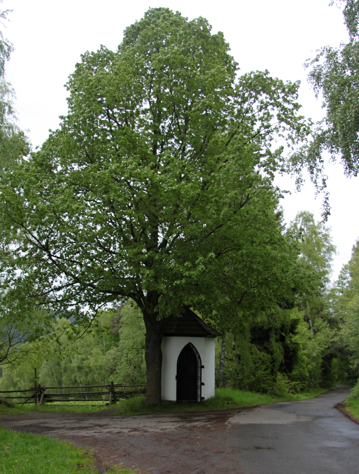 Malá kaplička u obce Červená na silnici od Kašperských Hor asi 100m před cedulí označující začátek obce Červená.