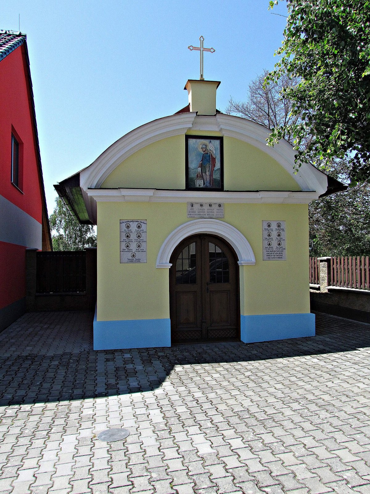 Velmi zajímavá sakrální stavbička se krčí mezi červeným objektem požární zbrojnice a malovanou fasádou Mateřské školky ve středu obce pod autobusovou zastávkou. Také ona je barevně pěkně vyvedená, neboť má žlutobílou omítku a modře obarvený sokl.