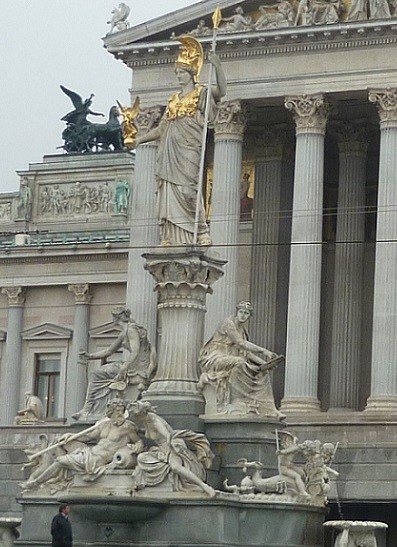 Kašnu Pallas Athénu můžete spatřit před budovou parlamentu ve Vídni..