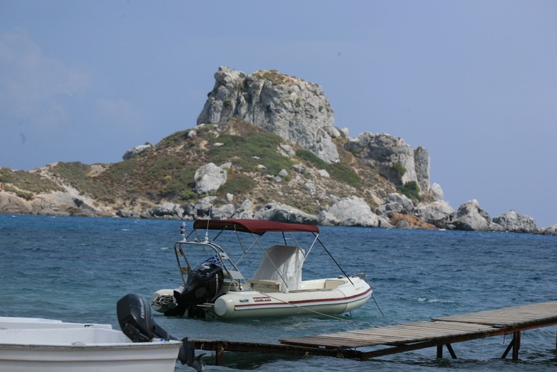 Krásný ostrůvek, obklopený skalkami a útesy. Je na něm krásný kostelík Ag. Nikolaos. Na bohoslužby se jezdí lodí z přístavu.