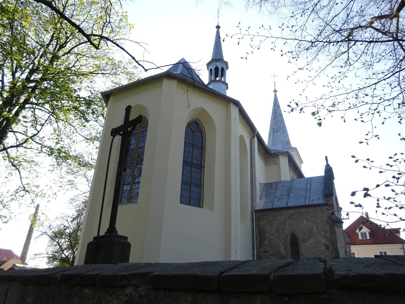 Kolem kostela lze spatřit ještě ohradní zeď, což dokládá, že původně sloužil jako hřbitovní kostel.