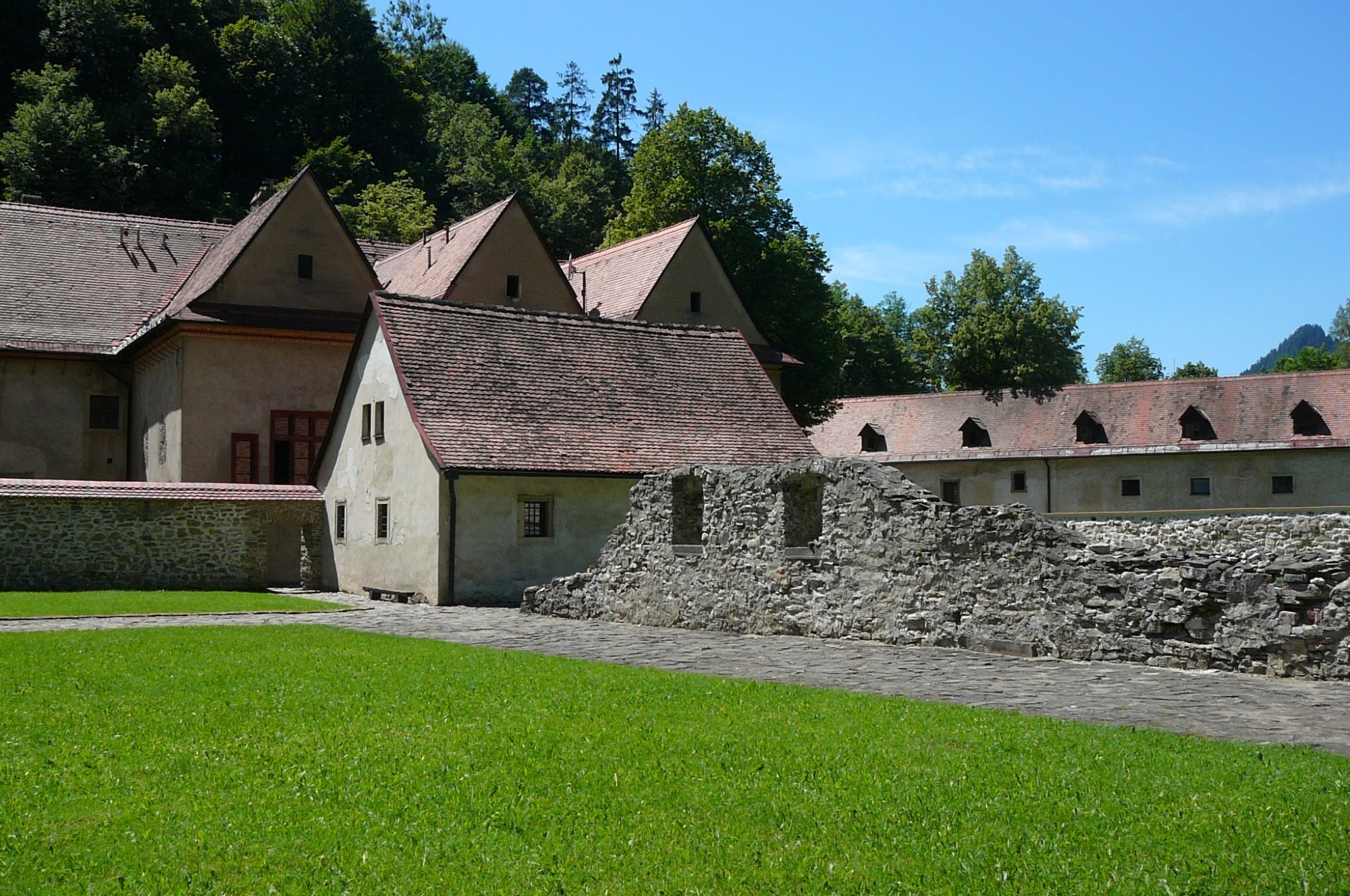 Z klášterního dvora je krásně vidět vrch Tri koruny