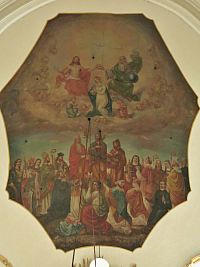 Olejomalba v chrámové kopuli původní není a vznikla teprve roku 1891, kdy zakryla původní fresku zničenou nedlouho předtím při nezdařené opravě. Jejím autorem je drážďanský malíř Karl Schmied a zobrazuje Korunovaci Panny Marie se sv. Josefem, Cyrilem a Metodějem i dalšími světci. Naopak varhany původní jsou a pocházejí z roku 1729.