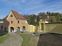 Zástaňme ale u toho, že původní obydlí poustevníků bylo do dnešní podoby upraveno v roce 1856. Jedná se o objekt na obdélném půdorysu, postavený ze smíšeného a cihelného zdiva. Střecha je valbová a - příčně položená – sedlová. Fasády bez plastického členění zakončuje profilovaná římsa, lemující i trojboký štít sedlové střechy. Brána má plochostropé obytné patro a segmentově zaklenutý průjezd, ve kterém jsou umístěny reliéfy s emblémy smrti a božího oka. Z hřbitovní strany jsou po obou stranách výklenky (snad původně osazené soškami, reliéfy či drobnými kapličkami); ten zcela vpravo se změnil v umělou jeskyni Panny Marie Lurdské.