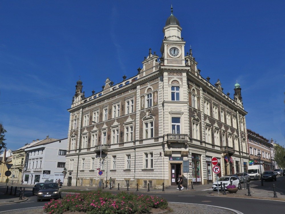Monumentální budova někdejší Okresní občanské záložny byla postavena v letech 1895 až 1896 podle návrhu architekta Čeňka Křičky a v době svého vzniku byla označována za jednu ze dvou nejkrásnějších světských staveb ve městě Jedná se o - až okázalou - neorenesanční budovu, jejíž stavbu vedl stavitel Josef Karabáček. K slavnostnímu otevření záložny došlo v září roku 1896.