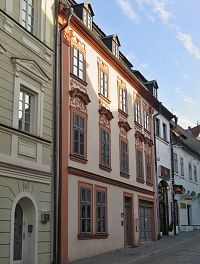 Dům č.p. 124 je znám jako Rabínský. Jedná se o hodnotný patrový řadový dům, původně ze 13. století, který byl přestavěn renesančně a barokně. Současná rokoková fasáda ale pochází až z poloviny 18. století. V přízemí domu se nachází rituální lázeň mikve z 20. let minulého století, kterou napouští přírodní pramen. Vedlejší barokní dům č.p. 125 je pro změnu bývalou Židovskou radnicí. Pochází z 18. století, má klasicistně upravený štít a je přístupný pouze průchozí chodbou z č. 124.