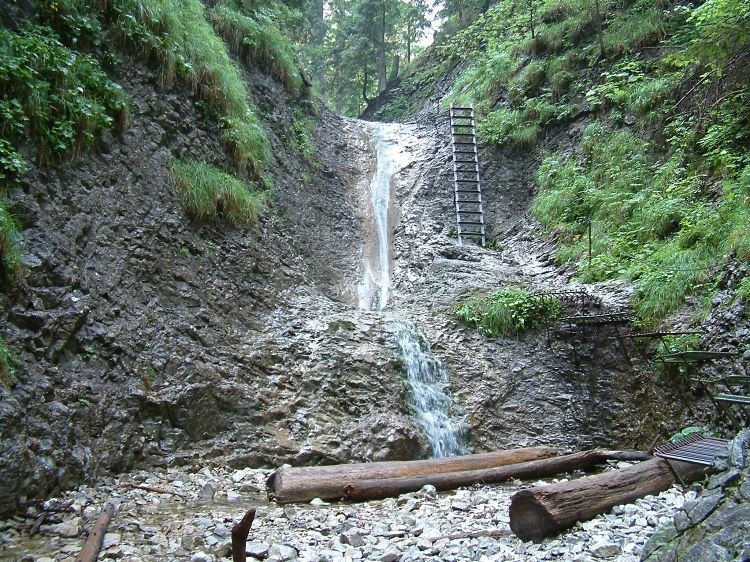 Další z mnoho vodopádů v roklině Suchá Belá. Opět přes něj vede zelená turistická značka a cesta je zajištěna stupačkami.