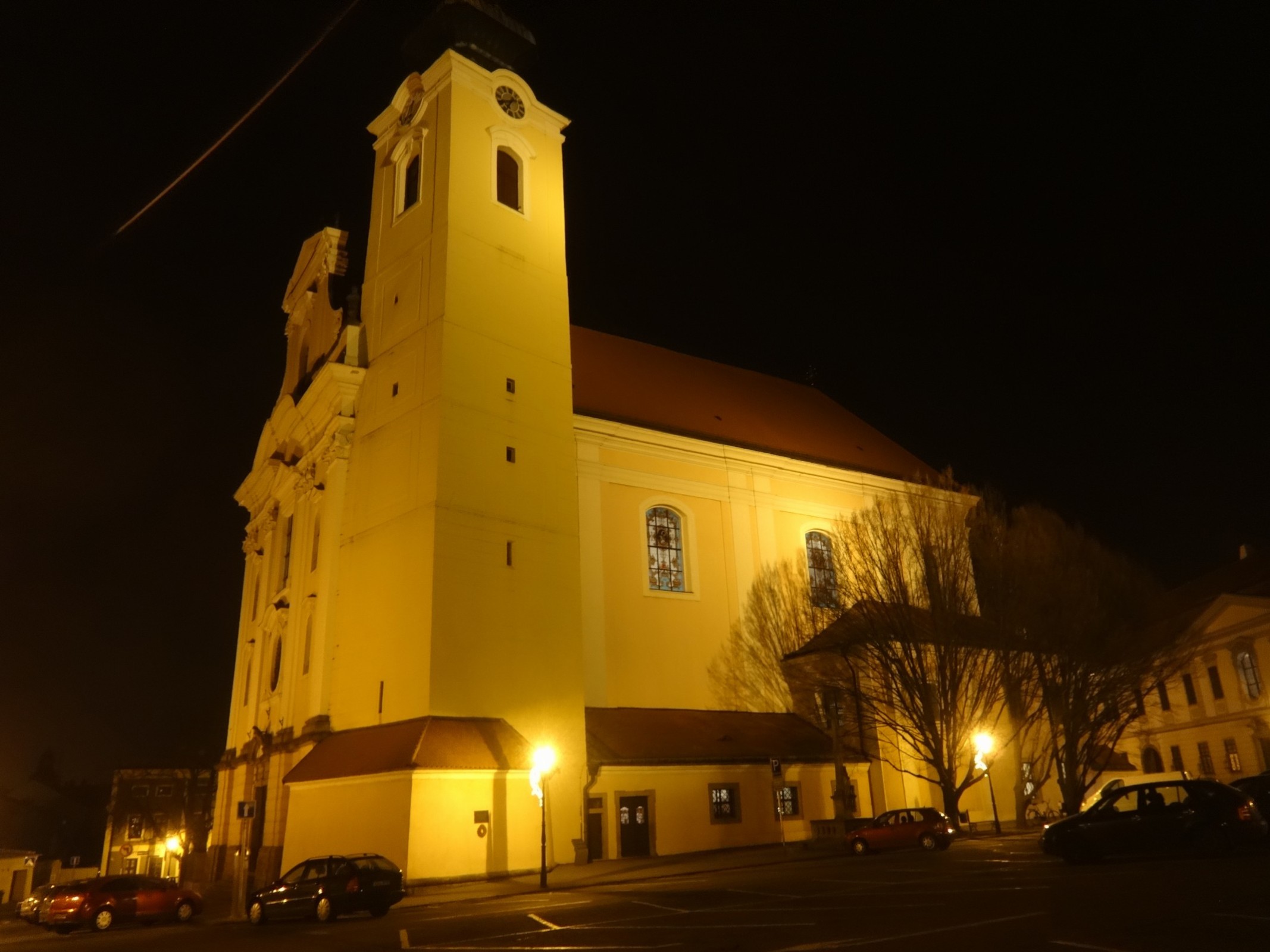 Dnes Riegrovo náměstí, kdysi tržiště s názvy Spodní rynek, Nový rynek, Zelný trh či Koňský trh. Nejprve zde stávala kaple s farními právy a ve 13. století tady biskup Bruno ze Schauenburku nechal postavit kostel zasvěcený Panně Marii. Uváděn je rok 1247. Tento římskokatolický kostel byl 26. června 1643 po obsazení města Švédy pod vedením generála Lennarta Torstensona vyrabován a vypálen.