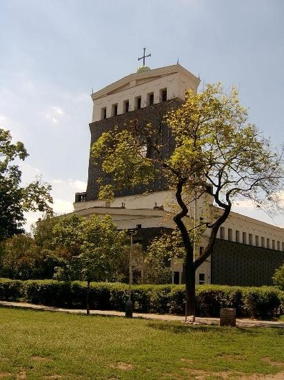 Kostel Nejsvětějšího Srdce Páně - Praha Vinohrady: pohled od křižovatky lucemburská x Milešovská