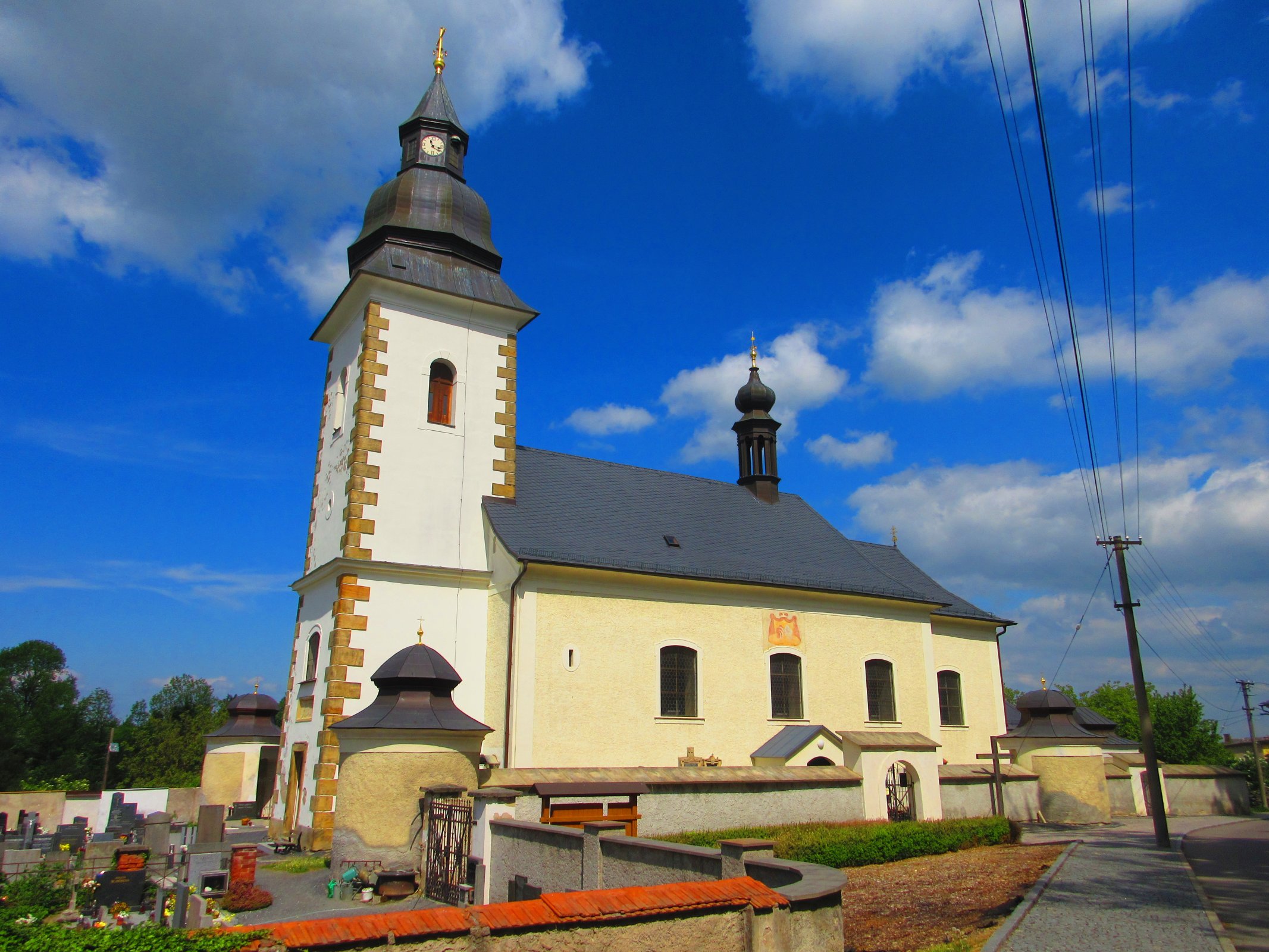 Současný jednolodní objekt byl zde postaven v letech 1752-53. V roce 1816 jej doplnila hranolová věž. V interiéru, jehož výzdoba probíhala postupně mezi roky 1780 až 1790, se většinou uchovala až do dnešních dnů. Mezi nejhodnotnější patří hlavní oltář s plastikou Panny Marie a rokoková Kazatelna. Zajímavý je i zdejší hřbitov, v jehož ohradních zdech jsou umístěny čtyři půlkruhové výklenkové kaple. Poblíž stojící fara byla postave…