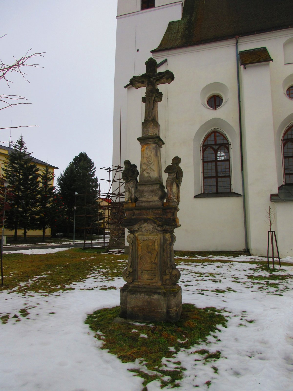 Stará venkovní freska na kostele sv. Jana Křtitele (Velké Losiny)