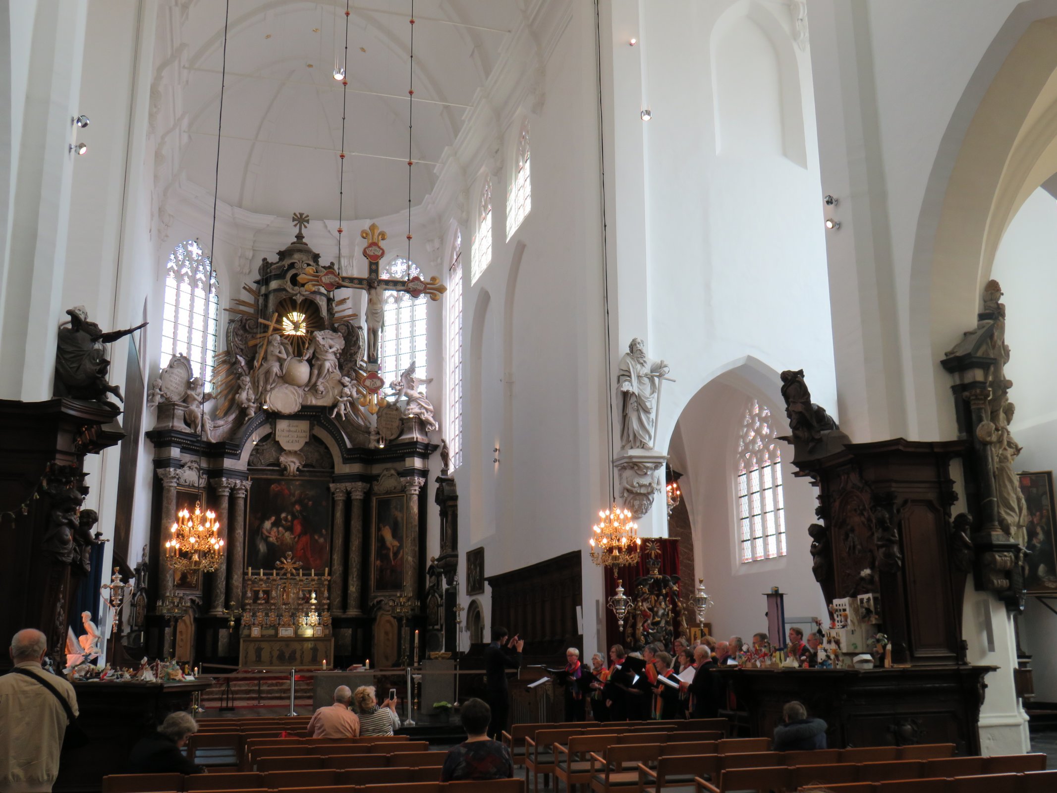 Farnost při kostele sv. Jana byla jednou z nejbohatších v Mechelenu, protože tu žili členové tzv. Velké rady, což byl od 15. století nejvyšší soudní orgán v Nizozemí, fungující až do francouzské revoluce. Jeho členové studovali právo a byli jmenováni panovníkem. Odtud tedy pocházelo značné bohatství farnosti, jež se odrazilo samozřejmě i ve výzdobě a vybavení chrámu. Nad oltářem je umístěn slavný barokní triptych od Petera Paula Rubense. Střední panel zobrazuje Klanění tří králů. Za bočními panely se nachází mechanismus, který umožňuje otáčení maleb v pravidelných intervalech tak, aby bylo možno obdivovat postupně všechny scény. Obzvláště pozoruhodné jsou dále mistrně vyřezávané lavice, v nichž sedávali bohatí sponzoři farnosti. Nejbohatší členové Velké rady byli zodpovědní i za zbudování kaple Nejsvětější Svátosti v roce 1548. Kaple je stejně velká jako původní kněžiště a je v ní hrobka objednavatele, tehdejšího předsedy Velké rady Lamberta de Briaerde a jeho ženy. V roce 2008 byly Institutem vlámského dědictví za varhanní skříní, v prvním patře věže kostela, objeveny nástěnné malby ze 14. století. A v tomto případě se nejedná o fragmenty, jak bývá u podobných nálezů obvyklé, nýbrž o velké obrazy sv. Kryštofa a sv. Jiří.